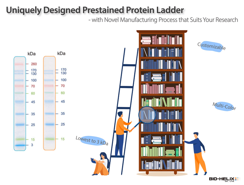 With over a decade of expertise in developing, manufacturing, and supplying bio-reagents for laboratory research, Bio-Helix’s products have been playing a key role in advancing research in both genomic and proteomic fields. For further enriching and diversifying the current protein ladder portfolio, we are pleased to launch the protein ladder customization service and make it widely available to the existing and new clients worldwide.