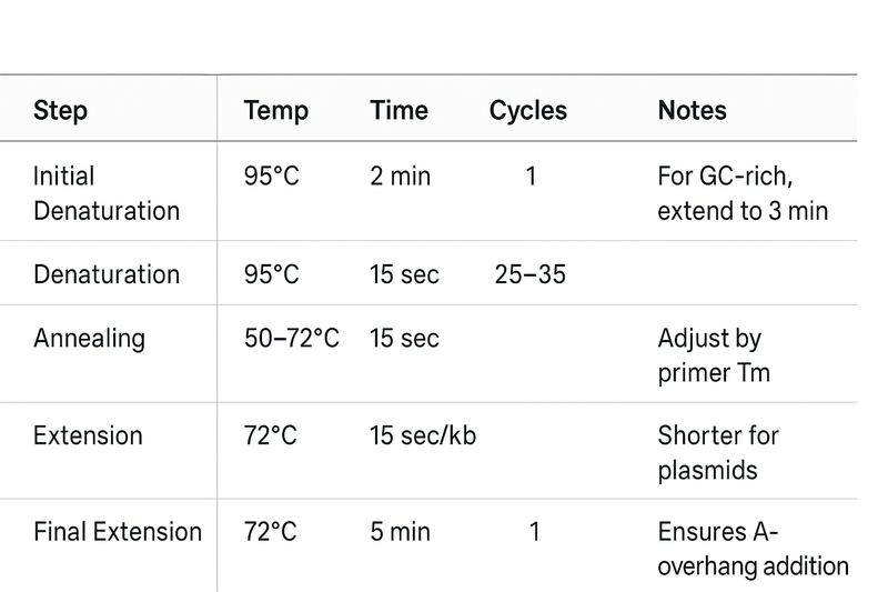 Tip: If unusual template (e.g., very high GC content, long amplicon, crude lysate) or a different thermal-cycler is used, consider increasing extension time or performing a gradient annealing temperature trial.
